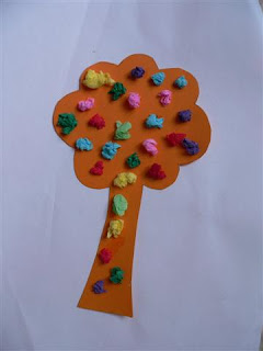 Tavaszvárás: Apró kezek apró galacsinokat gyúrnak, és felragasztgatják a fára. Pillanatok alatt kész a gyümölcsfa. (Szülők Háza)