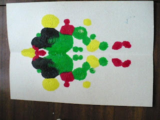 Szerencsére azért kreativitásért nem kell messze menni a családomban (másért sem, de az nem ide tartozik:). Dédpapa, azaz a nagypapám mihelyst elolvasta a blogomat, már fotózta is kreatív ötleteit, hogy aztán emailben szélsebesen átküldje nekem. Igen, ő a technika ördöge is. És a művészetek sem állnak tőle messze. De még a kertben is egész jól megállja a helyét. Szóval mielőtt túl sokat dícsérném, íme az ötlete, amit én például - pedig sok sok nyarat töltöttem a házukban - nem ismertem. Az technika egyszerű:: végy egy lapot :: az egyik felére pöttyözz temperát :: ajtsd össze :: a mű kész. Köszönjük!