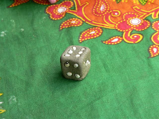 Vízparton tényleg nem lehet unatkozni. Mert ott a víz, és ott a part. De ha mégis megenne valakit az unalom, ajánlok egy jó játékot.l Először is kell mostni egy kis agyagot, vagy valmi ragacsos homokot. Másodszor kockát kell formálni belőle. Harmadszor pedig kis csigákat kell gyűjteni, lehetőleg a család apraja-nagyjának, és - ez nem könnyű - belenyomkodni a kockába. És kész a dobokocka! (Rajtam kívül mindenki tudja, hogy a dobókockán az ellentétes oldalakon szereplő számok összege mindig 7, csak én vagyok néha teljesen elmaradva a világ ezen fontos szabályaiból? Mert nagyon lazán csináltam egy sajátos beosztású kockát, szép sorban ahogy jött...még jó, hogy ott volt körülöttem papazon.)