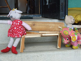 . . . jött viszont a pad, ami sehogy sem akart sikerülni. Hosszú volt az alkotás, fáradtak a kezek és az idegek. Majdnem feladta a mester, amikor mindentudó mamája megérkezett, és fordítva látta az egészet. Kész a pad, csak meg kell fordítani! - mondta, és csalta vissza a mosolyt kisfia arcára. Szög-kalapács-lécek-bíztató szavak. Ennyi az egész.