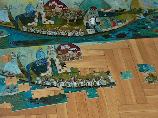 Igazán most kezdtük el a nagy Puzzle korszakot. Fantasztikus a Djeco új készlete, ami már Magyarországon is kapható. Nem mondom, hogy olcsó, de annyira más érzés egy gyönyörű puzzle-t kirakni, amin nincs se Micimackó, se Thomas (bár persze biztos azok is gyönyörűek, csak más szempontból). És egyébként igazi csapatépítés a testvéreknek. Tudom ajánlani, amikor már összecsapnak köztük a hullámok. Mert bár nálunk ilyen sosincs, talán máshol előfordul :)))
