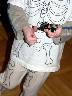 Szóval az úgy kezdődött, hogy kisnagyfiú már hetek óra szellemnek készült az ovis farsangon. Gondoltam, hát ez remek, végre egy egyszerű jelmez, ráérünk majd az utolsó este megcsinálni. Neki is fogtunk, de hát kiderült, hogy ez a világ legbonyolultabb jelmeze, ugyanis vagy egy óriási lepedőt vonszol szegény magán, amiből alig lát ki, vagy rápasszintom, hogy minden kényelmes legyen, de akkor egy szabás-varrás SOS tanfolyamot kell előtte elvégezni. Különben is, minden ruhapróba második percében közölte, hogy most ezt gyorsan leveszi, de majd az oviban jó lesz. És elment aludni. Akkor maradtam én szorongó anyuka, hogy szegény kisfiam majd leveszi a jelmezt, és ott lesz macinadrágban a többiek meg majd lövöldöznek vidáman a CowBoy jelmezükben. És akkor jött az ötlet, ha már úgyis valam félelmetes szeretne lenni - amit egyébként nagyon pártoltam - legyen csontváz alatta. Ha akarja, leveszi, és ott a meglepetés. Ja de csontvázat rajzolni nem olyan könnyű. És a tavaly kinőtt fehér pizsamanadrágot megtalálni sem, a sötét gyerekszobában. De pirkadatra meglett minden, reggel még egy gyors próba, és irány az ovi. A farsang zártkörű volt, de délután hallottam, hogy kisnagyfiú remek csontváz volt. Hogy szellem is lett volna? Arról nem tudnak, mert a szellemruha gondosan becsomagolva feküldt egy nylonzacskóban, ahogy reggel beraktam a kisszekrénybe . . .