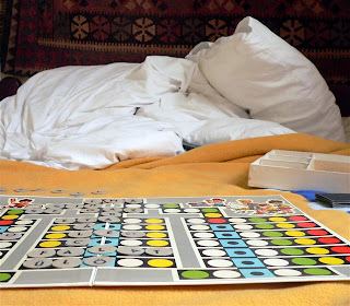 Pizsamás vasárnapra készültünk már péntek óta. Esik az eső, fúj a szél, jó lesz nekünk itthon. És akkor eszembe jutott egy régóta eldugott ajándék. Valahol a szekrény mélyén lapult, hogy majd ha megtanul olvasni ... és hát mivel megtanult, felavattuk. Ez egy őskori Scrabble, csak gyerekeknek, és irtó jó, mert maximum 20-25 perc egy menet (többet mi nem bírunk) és lehet vele mindenféle ajándékutalványokat nyerni, ha az ember színes karikára rak (maci sajtot, távcsövet vagy Sokol rádiót). Szóval szülők is jót derülnek, gyerekek meg ezen. Ja és a legjobb, hogy nagykisfiú, aki még egyáltalán nem tud olvasni, is nagyon élvezi, mert ő húzza az ajándékutalványokat. Ha látjátok valahol, érdemes megvenni, az a neve, hogy Szókincskereső.
