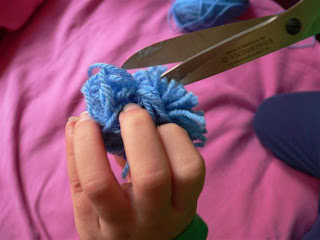 5. És kész a pom-pom. Ezzel utána nagyon sok dolgot lehet csinálni, mi tovább nem gondolkodtunk, mert nagykislány a Luca napi vásárra készül velük, remélem a többi gyerek is díjazni fogja (a fonalaim árát) . . .