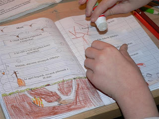 Mindenesetre az is kiderült, hogy nagykislány ezen egyáltalán nem akadt fent, mert ő is inkább díszíteni szereti a füzeteit, mint az állatok táplálékszerzésén gondolkozni . . . :)
